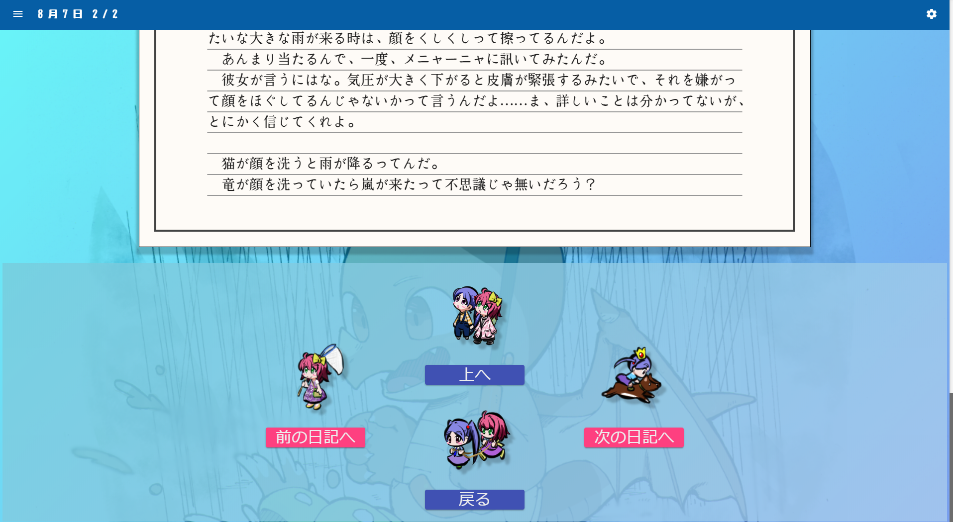 そうそう。中盤以降の方が日記の密度が高いので、序盤の一人だけの日とかは日記が追加されたりするかもね。