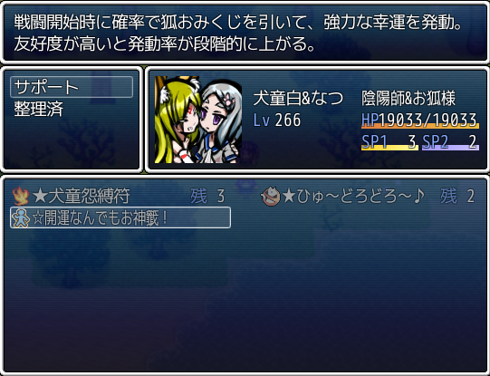 で、せっかくだから、ちょっとスキルの説明もしておこうかな。この子は状態異常が得意なサポートキャラで、使用回数は少ないが非常に強力なスキルを持っているぞ。